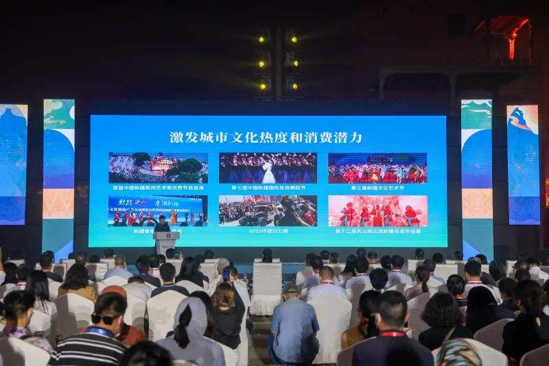 开幕式上,自治区文化和旅游厅发布新疆文旅促消费惠民措施。张亚辉 摄 开幕式上,自治区文化和旅游厅发布了新疆文旅促消费惠民措施;和田地区发布七项文旅促消费惠民措施及计划,推出“引客入和”补贴政策、“全年乐购 惠享生活”和田地区2025年消费券促销活动、“润土工程”、支持非遗传承发展、“一张机票”游和田、非遗主题国风大巴免费乘坐等活动;北京、天津、上海、广东、新疆现场发布“非遗好物”;启动2025“新疆是个好地方”非遗援疆主题展示活动暨非遗消夏购物月、《非遗里的中国》和田篇;自治区级非遗和田《灯舞》选段精彩呈现。